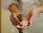 お菓子とお抹茶を頂いた後は、会場内に展示されている“ほぼ本物にしか見えない”工芸菓子の数々や、干菓子の繊細な木型などを鑑賞してうっとりしていました。 また、この日は笹屋伊織の職人さんが、目の前で和菓子作りを実演して下さいました。鮮やかな手さばきはもちろんの事、軽快な京都弁トークにも思わず引き込まれました。 例えば、桜の練り切りでも、シンプルな形のものや、花びらが多い華やかな形のもの等、同じ桜でも形は様々なので、その形に合った菓子名を付けるそうです。(例えばシンプルな桜は『ひとひら』、ゴージャスな桜は『花宴』等)そして、和菓子も着物と同じく季節を先取りするものらしく、例えは桜のお菓子は4月に作るのでは遅く、3月に作るものなのだそうです。これは知らなかった!良い勉強になりました。 ちなみに、この日は3月3日のひな祭りの日でしたので、ひな祭り限定のお菓子「ひちぎり」作りの実演も見せて頂きました。この様に、知らない知識を新たに得られる体験は、幾つになっても楽しいですね。