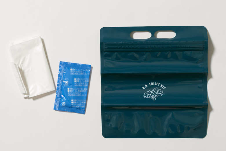 アウトドアフィールドや災害時の使用に適した軽量コンパクトな携帯トイレ。付属の吸水ポリマーで尿や便が約1分で凝固し、ダブルチャックの防臭袋で確実に臭いを閉じこめます(※使用済みのものをパックに外付けする際は、別売の「O.D.ガベッジバッグ 4L」を使用)。別に3個入りの「O.D.トイレキット セット」(650円)も販売しています。トイトレ中の子どもとのお出かけにも、便利そう!