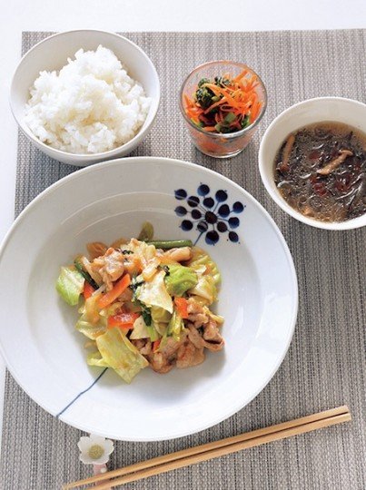 1日目はカットずみ野菜&合わせ調味料の「お料理セット」を使うので、用意する調味料は少なめ。残った野菜や乾物は、2日目&3日目のレシピにも登場。