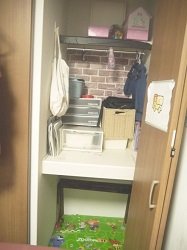 以前は側壁にカラーボックスを置いていたのでクローゼットの中が狭くなり、子供ですらなかなか奥まで入れずクローゼットの手前に置いてあるおもちゃばかりで遊んでいましたが、奥に棚を置いたことでクローゼットも広くなり、いろいろなおもちゃで遊んでくれるようになりました。また、プレイマットを敷くことで床に座るのもラクになったようで秘密基地のように楽しんで遊ぶ姿が増えました。クローゼットの中がスッキリしたおかげで扉も開けておくことが増えたので、物を取り出すときに扉を開けるワンアクションの時間がカットできて助かっています。クローゼットというとどうしてもなにかを収納しなければ…と思ってしまいがちですが、出しづらい位置に無理して収納しても取り出しづらいだけですし、出し入れの頻度が減っていくとだんだんと何を収納していたのか自分自身でも思い出せなくなることもあります。また、収納の容量がたくさんあるからと言ってやみくもに物を増やしても大丈夫と安心していると必要のないものまで買ってしまったり、捨てずにとっておこうという心理状態になったりします。クローゼット=収納場所という固定観念に縛られず、クローゼットも一つの空間という考え方で生かしていくと、また違った家の楽しみ方が生まれるのではないでしょうか?参考にしていただけたらと思います。