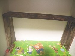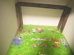 そして床には西松屋で購入したプレイマットを敷き詰めました。DIYした棚の上には種類分けしたおもちゃを置いてみました。