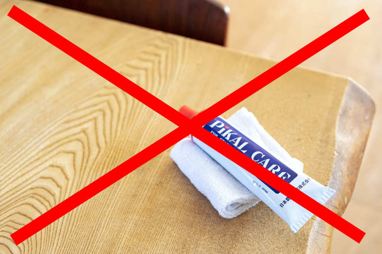 金属磨き剤ですが、研磨剤が入っているため、塗装されたものやコーティングされたものに塗りこむとはがれてしまう可能性があります。パッと見ではわからない素材も、メッキ素材のようなものがコーティングされている場合があります。材質がわからないものに対して使う場合は、目立たないところで必ず試してください。ちなみに、木製のものには使用できません。