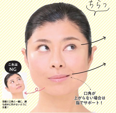 ッと引き上げて、にっこり笑顔をつくったら、舌をグッと前に突き出
