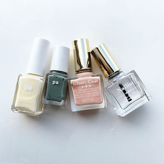 - 6.ポリッシュを乾燥させてから、トップコートを4、5回塗り重ねて完成