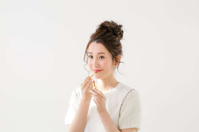 チークが終わったら、最後にリップを。開運メイクの仕上げに欠かせないプロセスです。チークと同様、自然な血色を演出するコーラル系にすると、普段のメイクに人相学メイクのノウハウを自然に取り入れられます。