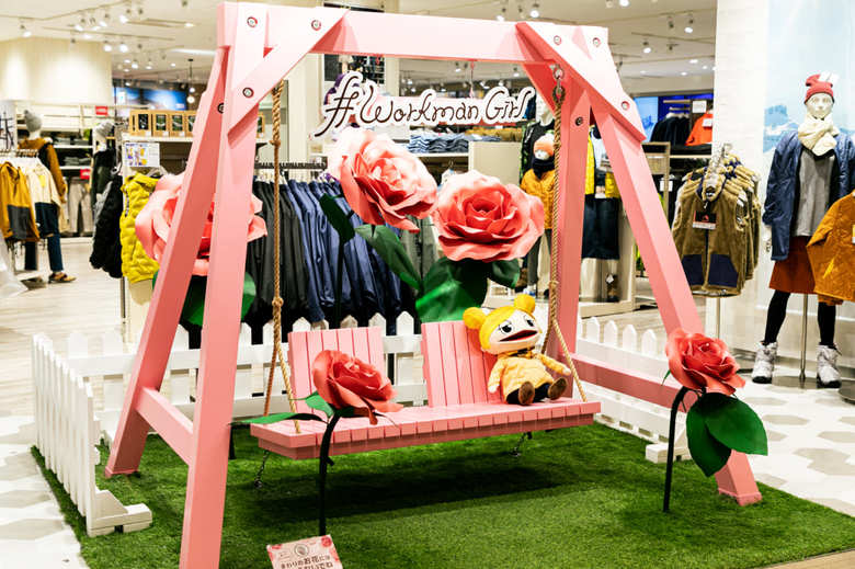 ちなみに、ブランコに座っているキャラクターは、ワークマン公式キャラクター・わくこちゃん。ワークマンの女性社員により生み出されたものだそうです。人気がでれば、グッズ展開も夢じゃないかも……とのこと。