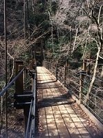 根っこがタコの足のような「タコ杉」は樹齢およそ450年だそうです。 山麓から頂上までは6コースあり、筆者は吊り橋のある4号路を選択しました。