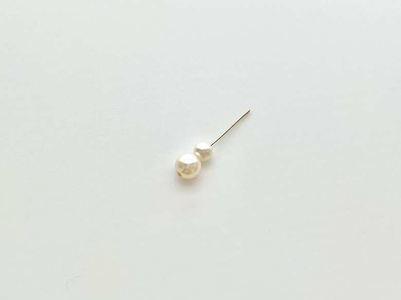 Tピンに直径8mmのパールパーツを通し、その上に直径6mmのパールパーツを通します。