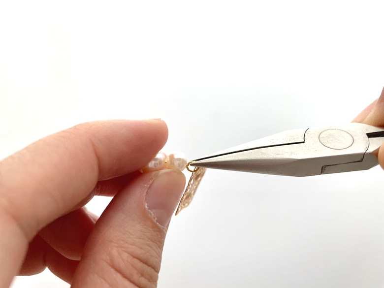 再び2本のペンチで丸カンの輪のつなぎ目を持ち、STEP1でずらした部分を戻すように閉じます。