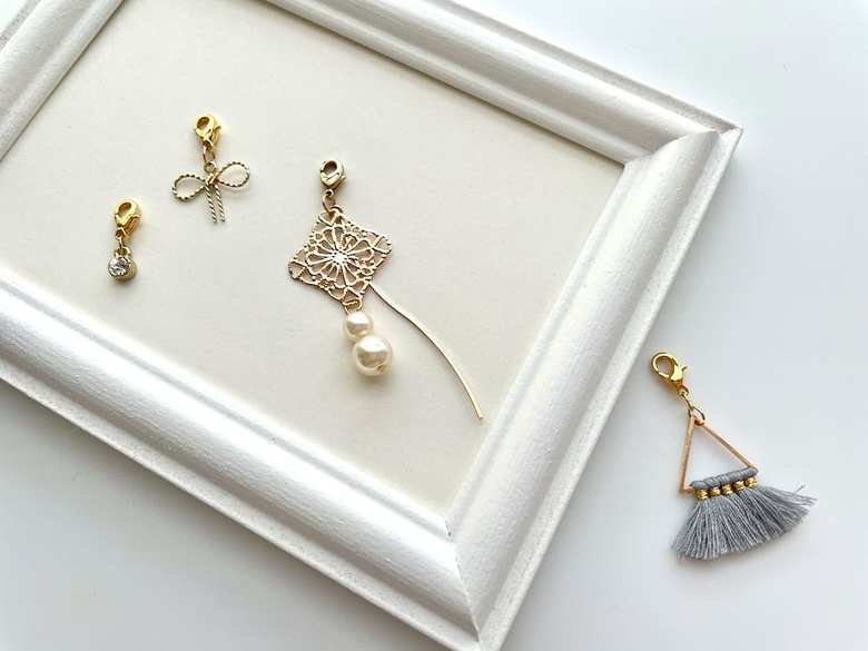 チャームが変わると雰囲気ががらりと変わります。簡単にできるので、好きなチャームを見つけたら作ってみてくださいね。