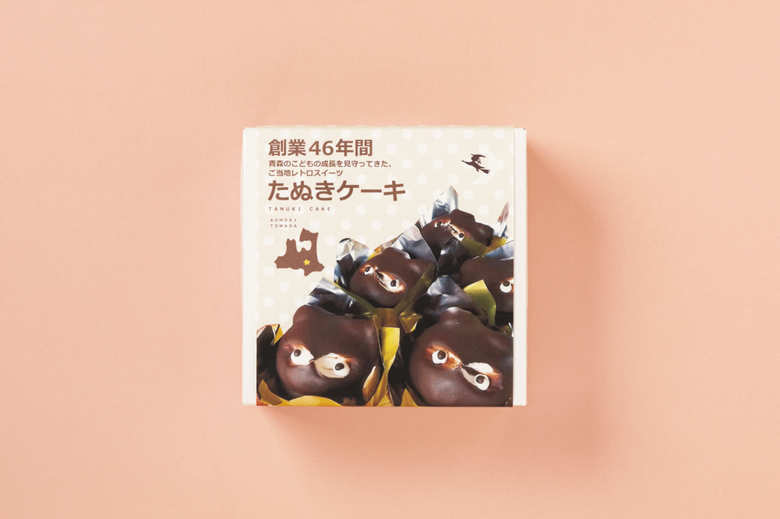 そんななか、創業から46年間たぬきケーキを販売しているのが青森・十和田市の大竹菓子舗。ふわふわのスポンジケーキの中には、青森県産の米粉を使ったオリジナルのカスタードクリームが練りこまれています。その上にのったチョコレートコーティングされたたぬきの顔の中身は、純生クリーム。創業時はバタークリームでしたが、時代の流れにそって、現在では動物性の純生クリームが使用されています。取り寄せでは冷凍で届くので、食べる際は冷蔵庫に移して、解凍してからいただきます。