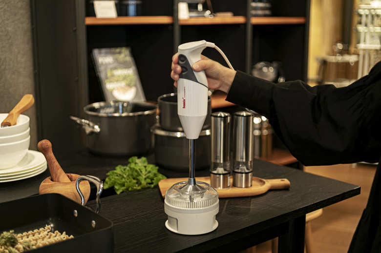 つぶす、混ぜる、泡立てる、砕く…などの面倒な下ごしらえを、いとも簡単にしてしまうのがハンディフードプロセッサー。スイス生まれのバーミックスは、元祖ハンディフードプロセッサーとして知られ、世界中でファンが多い一品。ON/OFFだけの操作は、簡単で直感的。すっきりとしたビジュアルから想像もつかない便利さです。