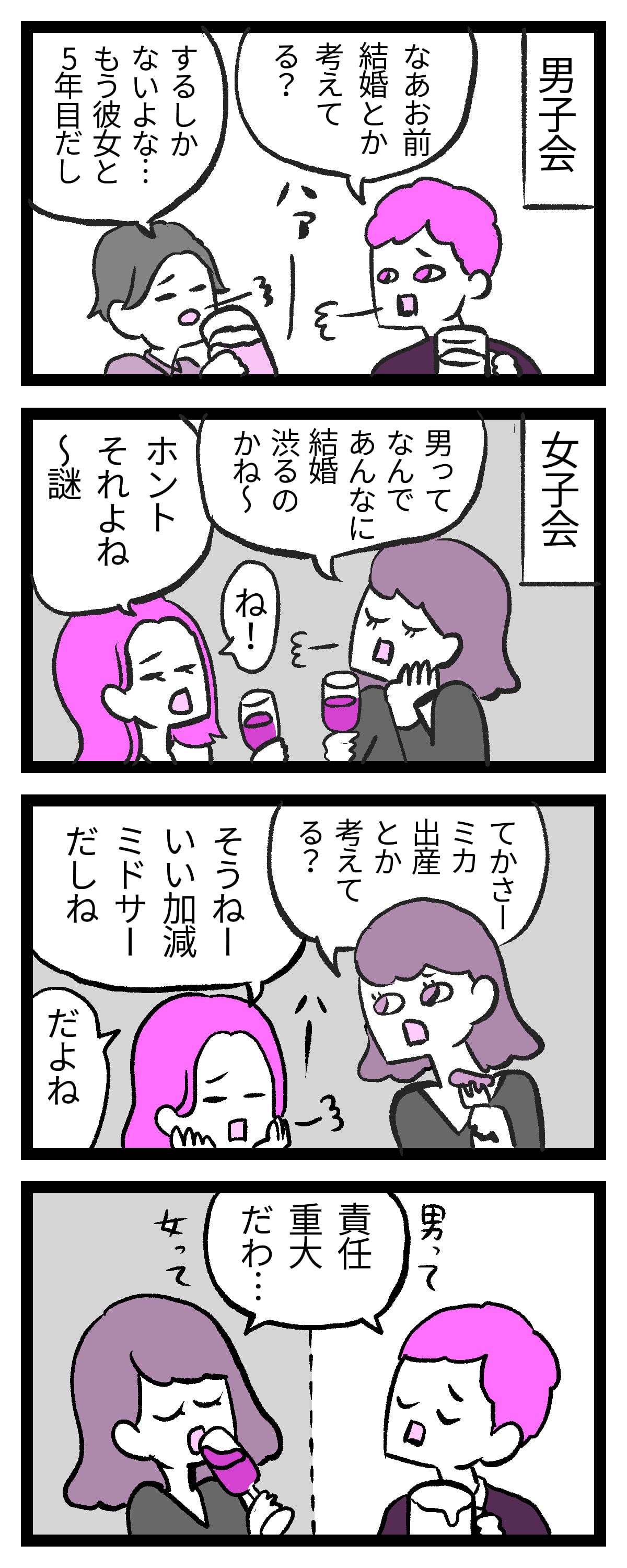 < #3 #4 #5 #6 #7 #8 #9 #10 #11 #12 > 「男ってなんであんなに結婚渋るの!?」それは女性の出産と似ているからかも 描き子 ライフ 夫婦 コミュニケーション 描き子の「この世は自分の理屈次第」 2021.05.18 仕事や家事育児、生活の中で感じるモヤモヤ。 続きを読む