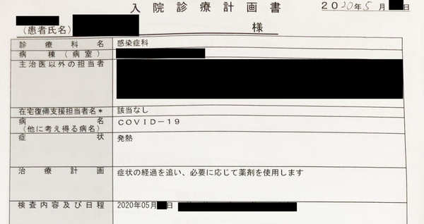 博子さんは無症状だったが陽性結果が出たので、陰性の子ども2人を含む家族4人で病院生活を送ることに。