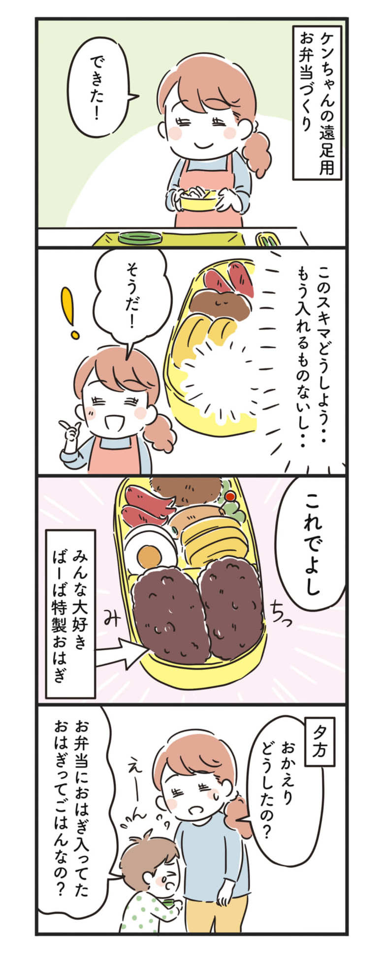 ケンちゃんの遠足のお弁当を作っていたマミ。隙間に入れるものが見つからず、とあるものを詰めてみたら、思わぬ事態を招き…!?