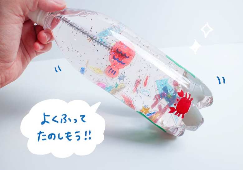 「海や宇宙など、自由に考えて作ってみてくださいね。ペットボトルの外側も飾り付けると、奥行きが出てさらに世界が広がって楽しいですよ!」とむーさん。