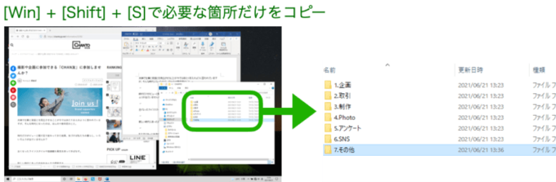 必要な箇所だけをコピーする[Win] + [Shift] + [S]