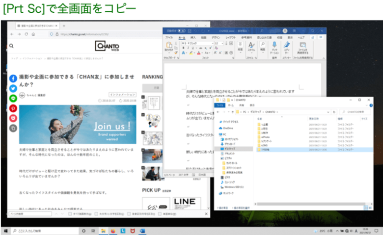 資料作成だけでなく、パソコントラブルなどの際に、ありのままの画面状態を見せたいときなどにとても役立ちます。