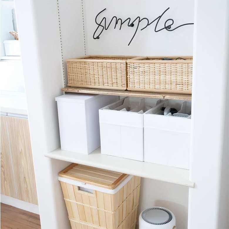 このように目視で中身がわかりやすい収納が増えれば、物の管理が簡単になるうえ、ラベルを用意する手間も省けます。