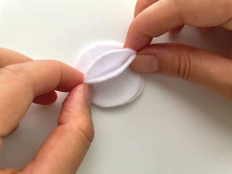 写真のように、STEP2の上の3枚を上に折り上げます。余裕があればアイロンでクセをつけるのがおすすめです。折り上げたフェルトの端を指でしごいて波のような形にすると、クリームらしさが出ます。