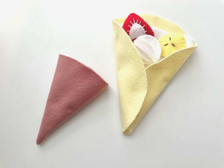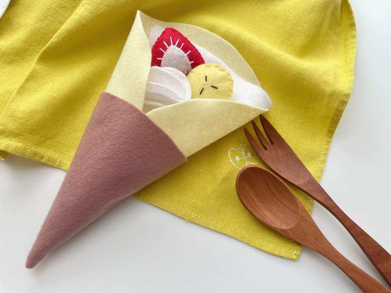 おうち時間が増えて、子どもが家にあるおもちゃに飽きてしまったと困っているママ、フェルトで簡単にできるおままごと用のクレープを作ってみませんか?