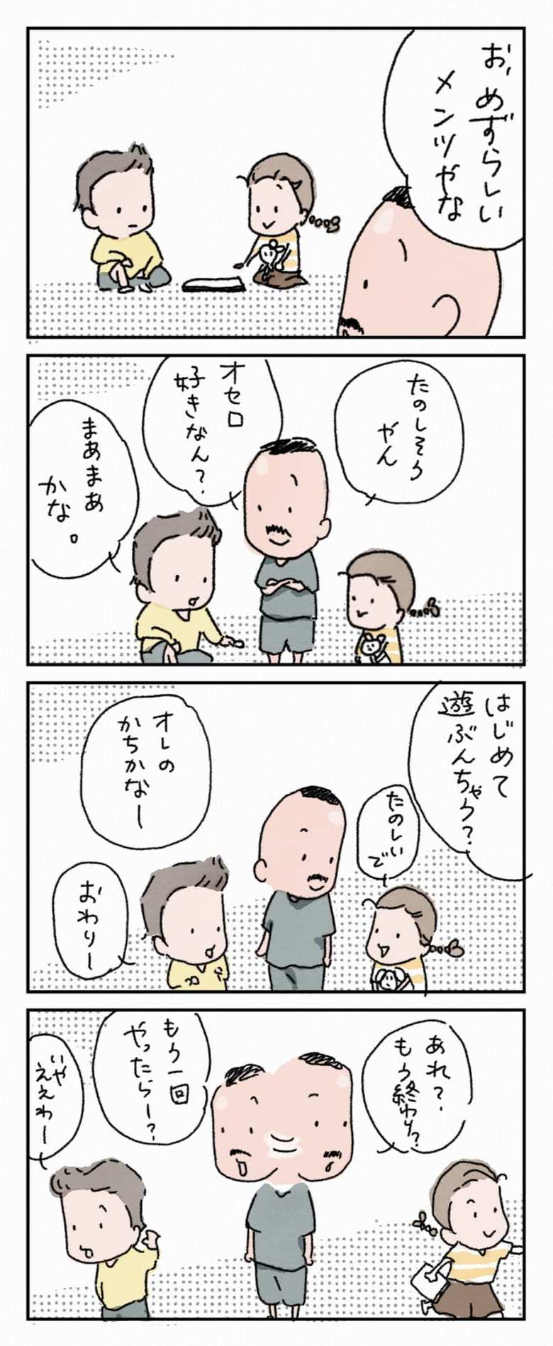 そこに色気を出した大人の声が入ってしまっては、それが雑音となって不快な思い出となるかもしれない。オセロをしている二人の横であれこれ喋っていた自分を思い出し、反省する。