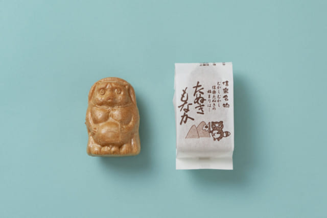 130年と歴史ある地元の甘味店で、国産材料にこだわり一つひとつ丁寧に作られている「たぬきもなか」。たぬきは、「他を抜く」「太っ腹(腹鼓)」に通じることから縁起ものとされているモチーフ。商売繁盛のために店先に置かれている信楽焼のたぬきを見たことがある人も多いかと思います。一つひとつ違う表情に、思わずほっこり。中にはあんがぎっしりと詰まっている、食べごたえのある一品です。取り寄せの場合は、こちらの木箱入り(2個760円、4個1510円)が購入できます。店頭では、1個(250円)単位や紙箱入りの購入も可能です。