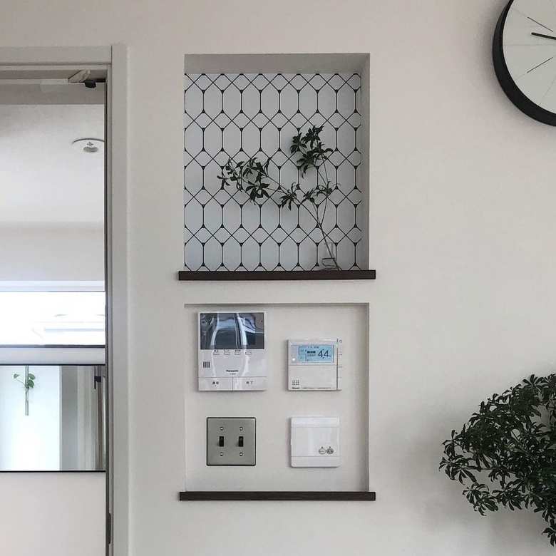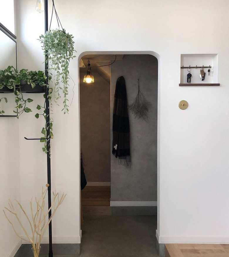 「スッキリと暮らしたいのですが、好きな雑貨を飾る場所も設けたくてメリハリのある壁の使い方をしたかったんです。広い壁の中で、飾るものの居場所を作ったという感じでしょうか。ニッチは玄関や寝室横に作り、鍵の収納や雑貨を飾る場所にしています」
