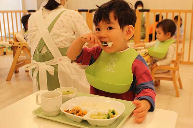 給食のときは、無理に食べさせるよりも、食べようとしたことや食べられたことに対して、一緒に喜びを分かち合うようにしています」