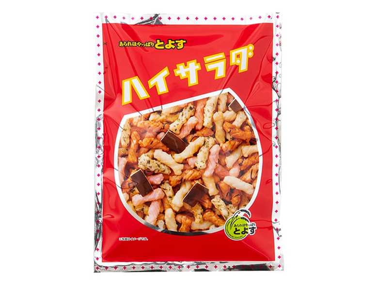 業界用語だと“サラダがけ”というのですが、主力商品である『ハイサラダ』というおかきのアイデンティティもしっかりつまっています」