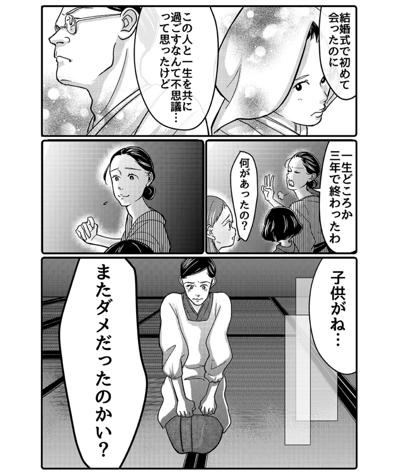 連載トップへ戻る 「お父さんの前に結婚していた人がいた」母の突然の告白 芸子 4コマ・漫画 2022.03.24 女性は子どもを産んだら、仕事を辞めて子育てに専念するのが当たり前? 働く女性が少なかった時代「ワーキングマザー」として生きた鈴。彼女の生き方は、育児と仕事の両立に悩む私たちの心を励ましてくれます。保育園全滅で職場復帰を断念した女性が、祖母の生き様に触れて、自分の生き方を見つめ直していくストーリー。 作者・芸子さんが、実の祖母を描いた作品です。 漫画を読む 「お父さんの前に結婚していた人がいた」母の突然の告白 漫画内の表現は、あくまで当時のエピソードを元に再現したものです 作/芸子 この記事の写真をすべて見る(4枚)