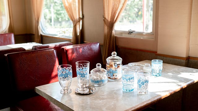 アデリアレトロの世界観に浸ることができる「喫茶アデリアーノ」という喫茶店を開いています。そこでグラスにご自身で好きな柄をつけるワークショップなども行っています。