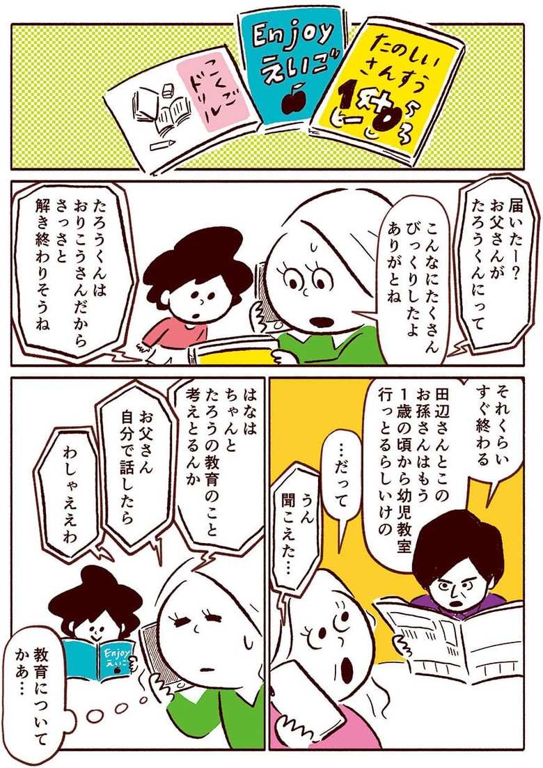 連載トップへ戻る 「孫の教育のこと考えてるのか?」実父からの静かな圧… 4コマ・漫画 2022.05.09 うちの息子は、なんと「ビジネス系3歳児」だった⁉︎ 令和時代の家族についてのリサーチをもとに浮き彫りになった家族の課題に、たろうくんがビシッと切りこんでいきます。 新しい家族のカタチ"共働きスマート家族"、その行方とは── 。 漫画を読む 第105話「『孫の教育のこと考えてるのか?』実父からの静かな圧…」(前編) 作/児島衣里 この記事の写真をすべて見る(2枚)