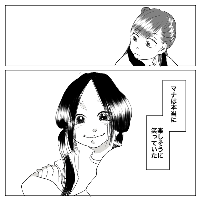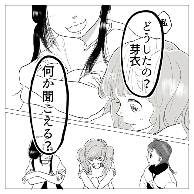 親友・芽衣に突然無視された芸子。異様な雰囲気の中、楽しそうに笑っているマナを見て、芸子は、以前聞いた「マナの真の姿」を理解したのでした。