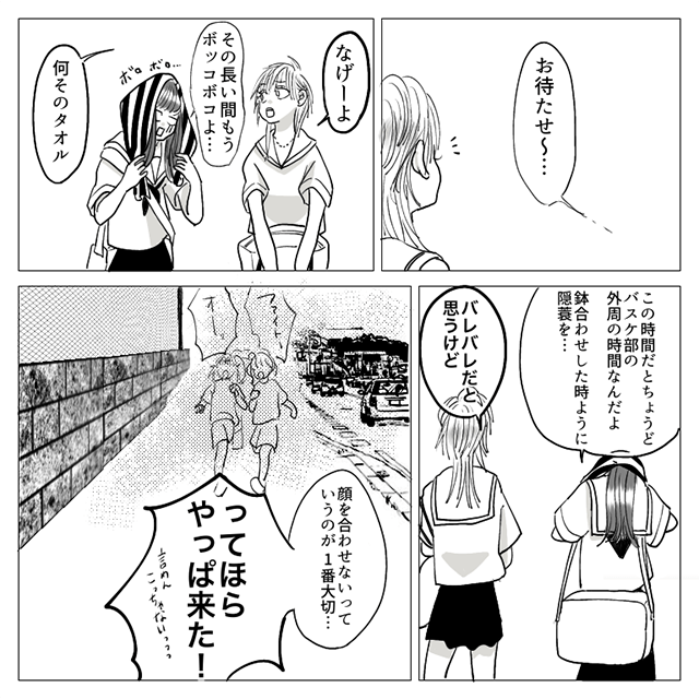 部活に行けなくなった芸子のそばにさりげなく寄り添う亜美。「理由があるなら堂々としていればいい」──。いつもはふざけてばかりだけれど、親友の力強い言葉に芸子はハッとさせられたのでした。