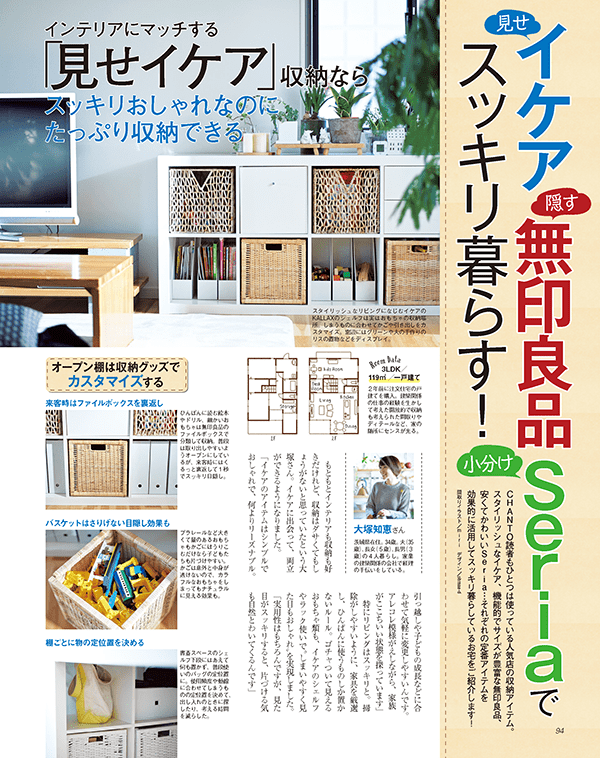 「見せる・隠す・小分け」と目的別にイケア、無印良品、Seriaのアイテムを上手に使ってスッキリ暮らすワーママ実例3名のお宅紹介は読み応えたっぷり。さらに、吉川永里子さん、村上直子さんの収納のプロが紹介するイケア、無印良品、Seriaの定番収納アイテムの使いまわしテクも必見です♪ 詳細は本誌をチェック♪ ◼︎CHANTO3月号チラ見せコンテンツ↓↓