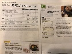 まず、毎週の注文時に『時短ごはんセット』にチェックを入れておくと、自動的に毎週届くようになります。晩御飯用がほとんどなので、メニューが充実しているのはとても良いのですが、ワ―ママの時間的余裕や以前も書いた「時間栄養学」の観点から、献立通りでは適していないと判断。またうちのように、夕飯の開始時間が遅く、子どもがまだ小さい家庭では、食べられないもの・出してもどうせ食べないものなどもあるので、「主菜1品+汁物」が作れる量を頼みます。(おかずが足りなくなったら、冷蔵庫にだいたいある納豆やお漬物などでカバーできるし、ヘルシーです。)