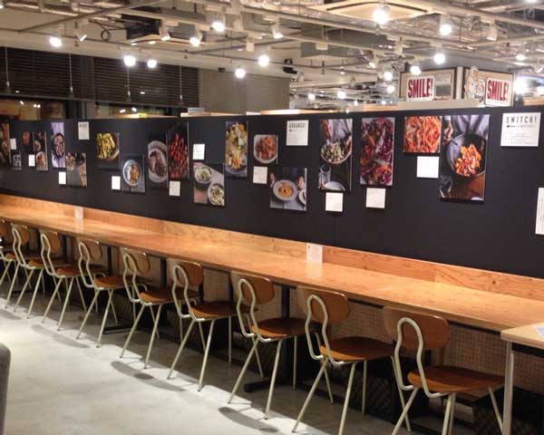 併設されたカフェでは本で使った写真をパネルにして展示しています。