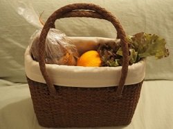 私が好きなのが、シャツとデニム等のカジュアルファッションに、やまぶどうのかごバッグを合わせるコーディネートです。私は週末に果物や野菜、ベーカリーのハードブレッド等を商店街で購入する事が多いのですが、青果類と、このかごバッグが非常に相性良しなのです。ポリエステル製のエコバッグでも良いのですが、かごバッグは底がしっかりしているので、リンゴ等の丸い果物を入れてもおさまりが良いですし、かごバッグを持って買い物をすると、外国のマルシェに出かけているような、ちょっとしたワクワク感も味わえます(笑)。 見た目も、かごバッグから良い焼き色のパンや果物がちらっと見えていると可愛いですよ。そしてかごバッグの内側が汚れないか心配な時は、ざぶざぶ洗える綿素材等の中袋を入れておけば安心です。(私も通常、綿素材の中袋を入れた状態で使っています。)