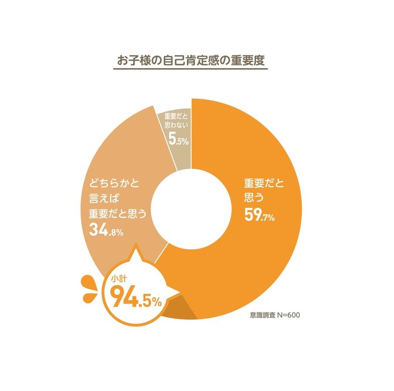 次に、「親が子育てで伸ばしたい項目」を調査。1位は「他人を思いやる気持ち」29.9%、2位は「自己肯定感」14.0%、3位は「目標に向けて努力を継続する」の13.2%になりました。他の項目や能力と比較しても「子どもの自己肯定感を伸ばすこと」に関心は高いようですね。