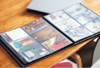 使っているアルバムは1シート6ポケット。1見開き、12枚を1か月分にすれば、見やすく管理がしやすい。写真は11枚厳選し、残りの1ポケットには育児日記カードを。
