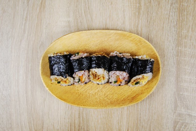 それでは“もち麦ご飯海苔巻き”から試食。ジューシーな焼肉の旨味と、少し歯ごたえのあるもち麦が絶妙にマッチしています。またほんのり甘味のあるほうれん草と錦糸卵のおかげで、味に変化がついて飽きが来ません。次に食べた“雑穀ご飯海苔巻き”は、たくあんとニンジンのシャキシャキ感が絶品。さまざまな味や食感が押し寄せてくる海苔巻きは、韓国アイドルのパフォーマンスくらいクオリティが高いです。