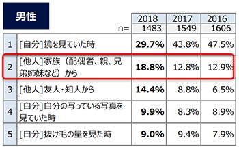 “家族の指摘”で薄毛を気にし始めた人は多い!