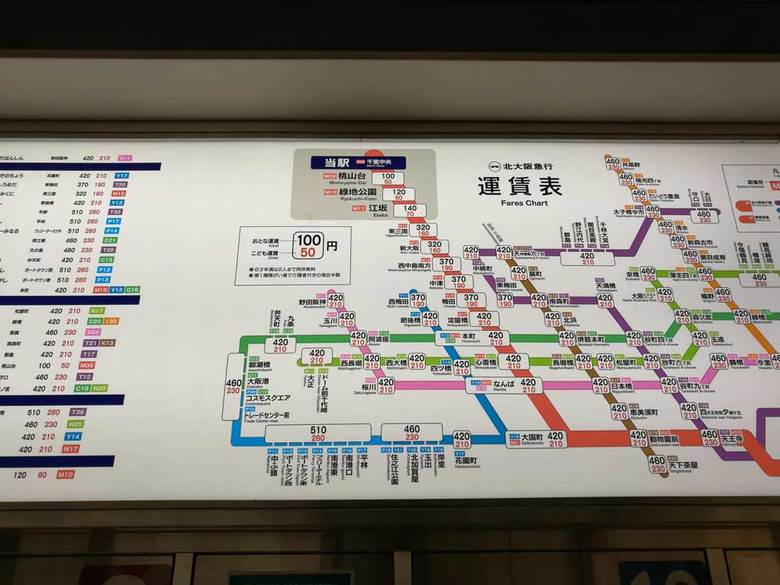 値上げされたとはいえ、北大阪急行電鉄の運賃の安さがよくわかりますね。 なお、大阪市内の駅は大阪メトロに属するので、運賃があがります。千里中央駅~梅田駅間は370円、千里中央駅~なんば間は420円です。