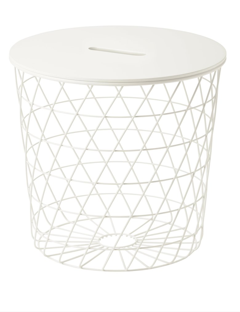 散らかりがちなぬいぐるみなどをサッとしまってひとまとめに。シンプルなワイヤーバスケットなのでほうりこむだけで、おしゃれに収納できます。 商品名:KVISTBRO クヴィストブロー 収納テーブル