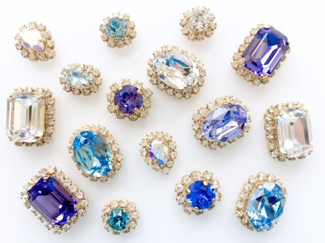 ビジューはもともとフランス語で、「bijou」と表記されます。フランスでは「宝石」を意味する言葉ですが、ファッション業界で使われる場合は、その対象がぐっと広がります。本物の宝石はもちろんのこと、キラキラと輝きを放つ「宝石のような宝飾品」もビジューと表現し、「キラキラと華やかな輝くを放つ、小さな装飾品」全般を指します。 ビジューアクセのほかにも、ビジュートップスやビジューサンダルなど、女性向けファッションに数多く取り入れられています。