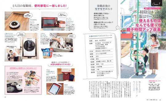 この春、復職する予定のママにピッタリの企画もご用意しました。職場復帰を経験したママたちに、復職直後に抱えた悩みと解決法をインタビュー。仕事、家事・育児をストレスなくまわすためにたどりついたライフスタイルを取材しました。お掃除ロボットや洗濯乾燥機、シッターさん、食材宅配…などを活用したり、家族に協力してもらったり、あなたと同じ働くママが見つけたノウハウだから、マネしやすいはず!