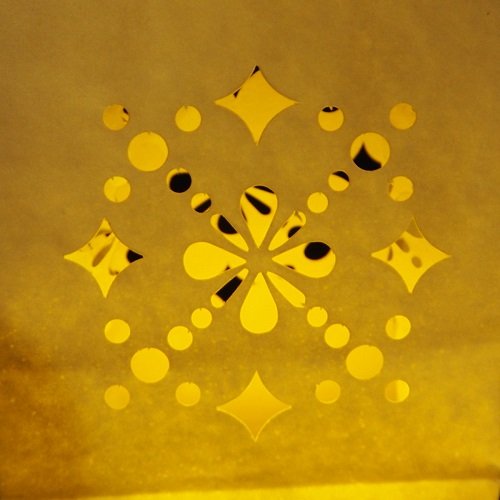 写真:外国人の友人から貰った、ティーライト用ペーパーランタンの透かし模様。