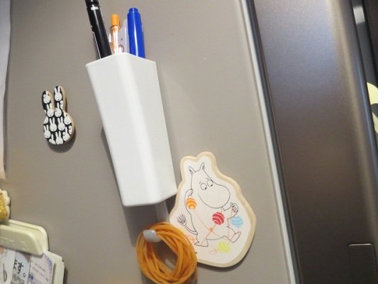 ちなみに最近買った100円商品で「かゆいところに手が届く!」と感動したのがこちらです。育児に関係なくて申し訳ないですが笑 マグネットが付いていて冷蔵庫に貼って使うペン立てなのですが、下にフックもついています。商品パッケージには使用例としてフックにマスキングテープや輪ゴムをかけるといいと紹介されていました。我が家ではジップロックなど保存袋に油性ペンで賞味期限などを書き込むことが多いので、冷蔵庫近くに油性ペンは必須。さらに使いかけの冷凍食品などを輪ゴムで留めて冷凍庫に入れるので輪ゴムも必須。どちらもスマートに収納できて、万能な商品だと感動しました。