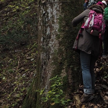 田中さんのお話の後は、田中さんが管理している森林を森林インストラクターの石山さんの案内で散策しました。森林は、綺麗に枝打ちされていて、杉の木は綺麗にまっすぐ空に向かって伸びていました。 檜原村の森林は、針葉樹と広葉樹が半々なのだそうですが、地域によっては針葉樹だけだったり、広葉樹ばかりだったり、同じ「森林」でも、自生している木々は様々なのだそうです。ちなみに、檜原村の森林の木で、一番高い値段が付くのは、一枚板が取れる位立派な欅(けやき)だそうです。森林の中にも立派な欅がありました! ところで、森林散策の時に、何の舗装もない獣道の様な道を通ったのですが、息子が「熊や猪が出てきそうで怖い!帰りたい!」と騒ぎだしてしまいました。時々地元の高尾山に行っていたので、山には慣れていると思っていましたが、檜原村と比較すると、高尾山は山道はじめ、人間の手が入っているエリアが多いので、それなりに快適に山歩きが出来るようになっていると思います。そのせいか、今回の様にほぼ自然に近い山道は初めてで、恐怖感が出たようです。仕方なく「安心しよう!冬は熊や蛇は冬眠中、猪は夜行性だからめったに出ないよ(本当は昼間も動き回ることがありますが)。出ても『見られてラッキー』と思おう!」等なだめすかして完歩させました。後から石山さんからお聞きしましたが、都会育ちの子供達は綺麗に舗装されている道に慣れているため、山道で戸惑う子供が多いのだそうです。 田中さんの管理されている森林は、樹齢が相当高いと思われる、立派な幹の杉が沢山ありました。曲がった木や枯れている木が少なくて、いかに丁寧に管理されているかが良くわかりました。 そして、一言「森林」といえど、場所により全く違う光景になるのが興味深かったですね。フィトンチッドも溢れている環境のせいでしょうか、沢山歩きましたが全く疲労感がありませんでした。 ※フィトンチッドとは微生物の活動を抑制する作用を持つ、樹木等が発散する化学物質。癒やしを与える効果も。